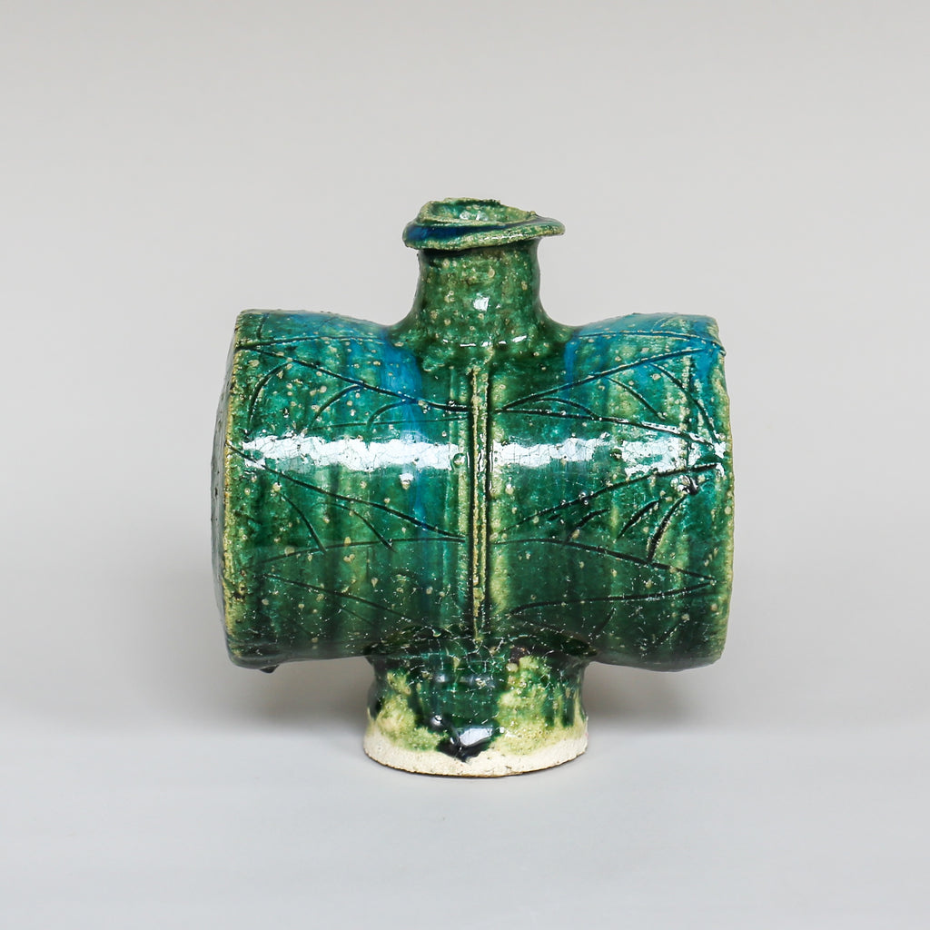 Stoneware with feldspar inclusions, oribe glaze, pine needle ash, post-firing acid soak7.8 x 7.4 x 5.1 in(20 x 19 x 13 cm)$650.00 Single Edition
